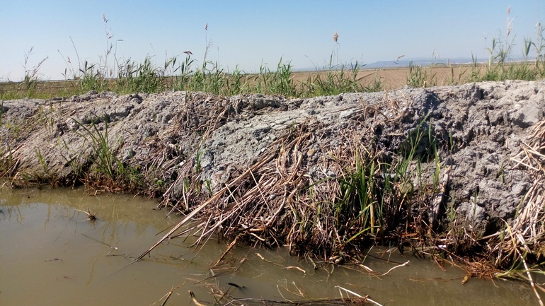 Рис начинают сажать в мае, собирают уже в сентябре. Пока поля отдыхают. Дренажная система запускает воду из канала на поля.