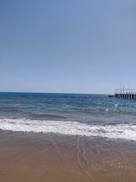 Пляж показался небольшим, вода пока холодная 18-19 градусов,но многие купались.На пляже есть бар.