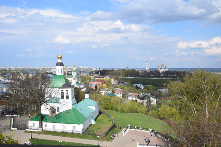 Это был вид со смотровой площадки на Спассо-Преображенскую церковь, и Успенский собор.