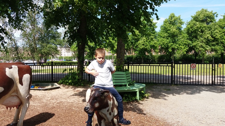 Как мы отдохнули!(рассказы и фото)Девушки не судите строго, фото и видео на телефон криворучками, ещё и при заливке на ютуб качество ухудшается. Под катом много фото и видео. Юнибакен это детский музей по сказкам Астрид Линдгрен. Вход 18евро со взрослого и 15 евро с ребёнка, но он стоит этого. И если у ребёнка инвалидность и есть удостоверение, то сопровождающий идёт бесплатно, я показала удостоверение и уточнила, что мы с Эстонии, и прошла как сопровождающий бесплатно, но за ребёнка инвалида при этом идёт плата 15 евро. Начали мы с паровозика, скажу сразу, мне и самой понравилось на нём проехать, озвучку поставили на русском. Видео моё.