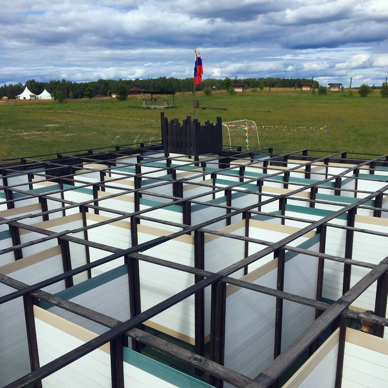 Есть на территории ещё один лабиринт, маленький. 300р с человека. За эти деньги туда можно зайти 2 раза, первый пробный, можно ходить сколько хочешь, второй на время. Самым шустрым дают призы.