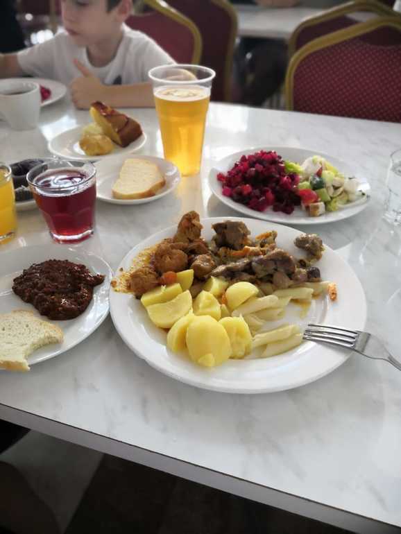 Обычная столовская еда , но ее много, выбор разный : курица , рагу , котлеты на обед . 2 вида супов , каши , выпечка ( очень вкусная ) просто и без изысков , но вкусно ! Мои дети были довольны и муж тоже ))