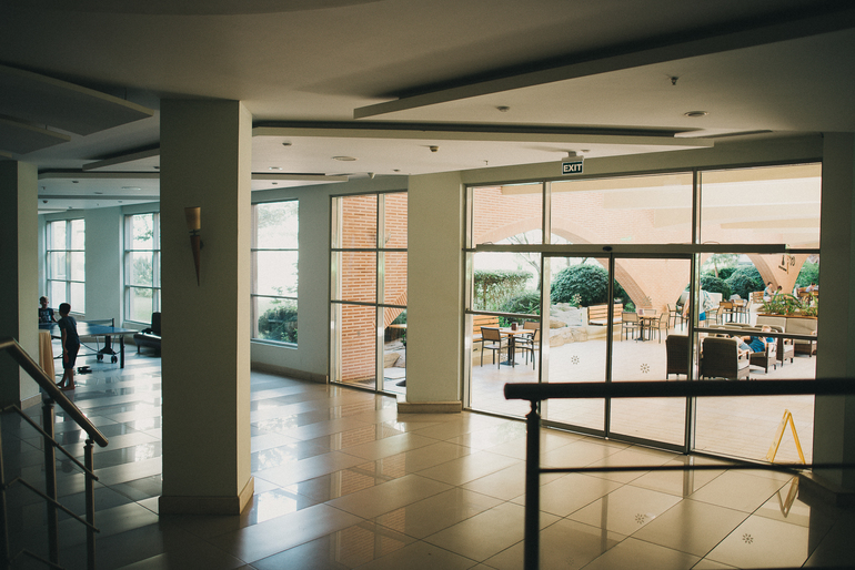 Территория. Там много где можно погулять, даже есть парк развлечений. Но нам он еще не подходил, поэтому ходили в главный корпус в комнату атракционов внизу - там сын катался на машинках, паровозиках, также там есть настольный хоккей и боулинг, до которого мы так и не добрались, хотя хотели. С коляской везде удобно.