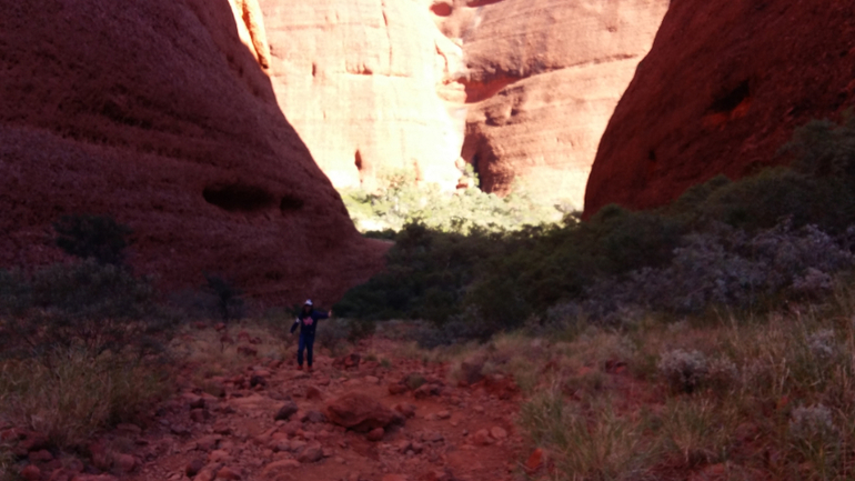 Обычно, говорят, на осмотр парка и наслаждение им у туристов уходит 2-3 дня. Муж с сыном, бывалые туристы, оставили себе лишь один день (ибо что там так долго делать?!), поэтому любоваться Улуру в объятиях восходящего солнца отправились с самого раннего утра. Они планировали встретить рассвет, прогуляться вокруг Улуру, пообедать в отеле, прогуляться около Ката Джуты, вечерком принять ванну, выпить чашечку кофе...... Реальность выглядела так: с рассвета и до самой темной темноты пробыли они в парке. Муж говорит, остановиться, оторваться, уйти было просто невозможно - непонятное ему очарование, желание пройти еще чуть-чуть, еще вот только до того поворота, того валуна, постоянно открывающиеся захватывающие пейзажи (камень, еще камень, о, смотри какие камни, а эти-то, эти!!!! - я так себе представляю), - все это держало их, несмотря на голод, жару и тучи мошкары. В итоге они очень поздно легли спать, утром проспали и еле успели на обратный самолет в Сидней. Жалели, что приехали тудатолько на один день.