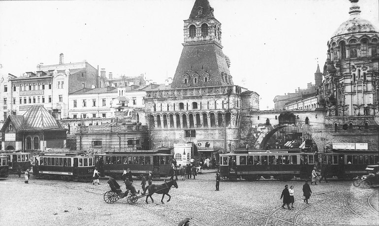 Владимирские ворота, Лубянская площадь с трамвайным кругом, Никольская улица.