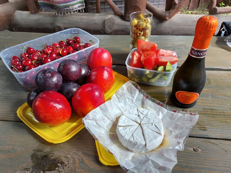 С собой у нас были сосиски, картошка, фрукты, овощи....красота!