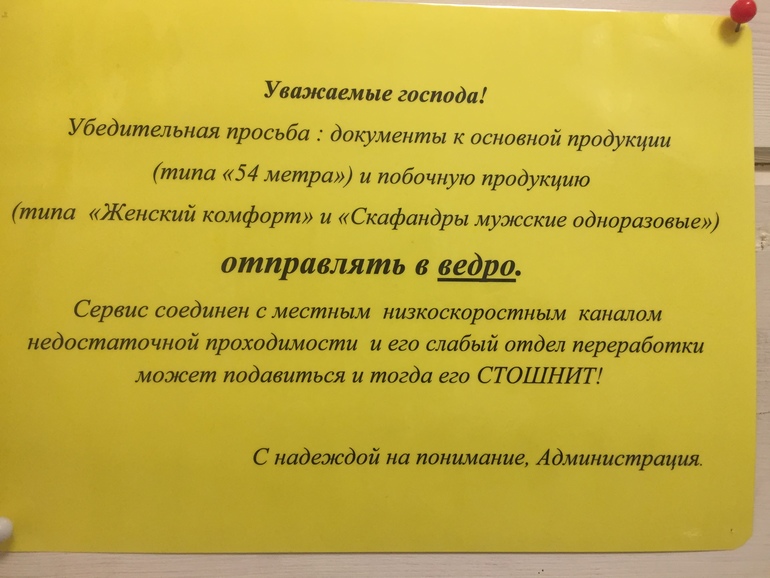 Витиеватые объявления в санузлах, не сразу сообразила о чем речь, пришлось вчитываться