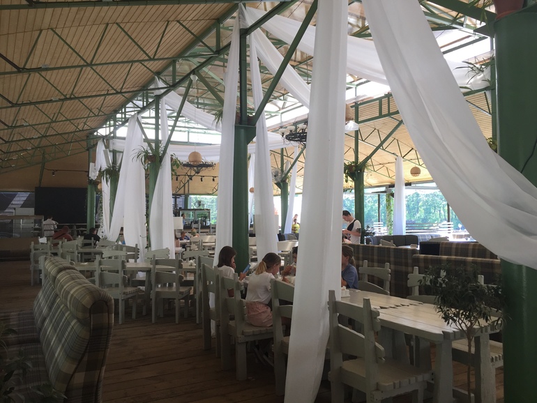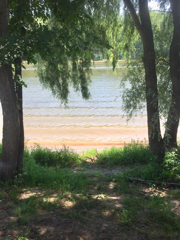 Территория вытянута вдоль берега и закрыта возвышенностью. От одного конца до другого- как мне показалось, больше километра. По жаре за +30 не находишься. Но я незаметно умудрялась вышагивать свои 10 тыр шагов. Место красивое, конечно, очень живописное