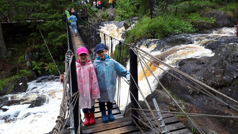 На следующий день опять дождь. Но мы же приехали не дома сидеть! По плану у нас был зоопарк, его точно отменяем, там от дождя спрятаться не где, вся территория под открытым небом. Да и животные все попрячутся от дождя, нет смысла туда ехать. Решили, что поедем на Рускеальские водопады (они недалеко от Мраморного каньона). В этот раз я взяла с собой запасные брюки для всех - не понадобилось. Пока доехали дождь закончился, правда периодически он начинал снова моросить, ну это уже пустяки после вчерашнего проливного дождя.