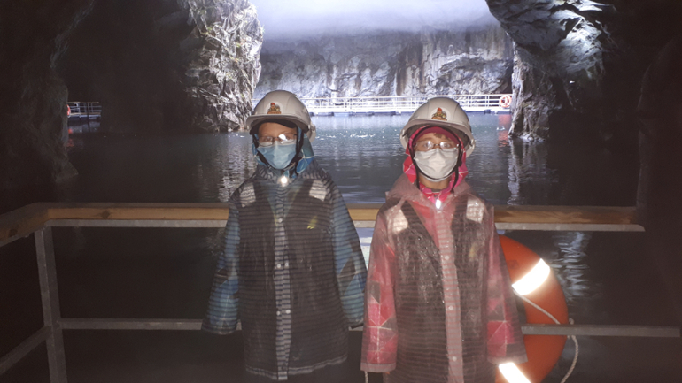 Просушившись мы побежали в подземную Рускеалу. Нас экипировали по полной: каски, жилеты. На всех должны быть маски, если маску снять - экскурсовод сразу прекращает рассказ - предупредили об это заранее.