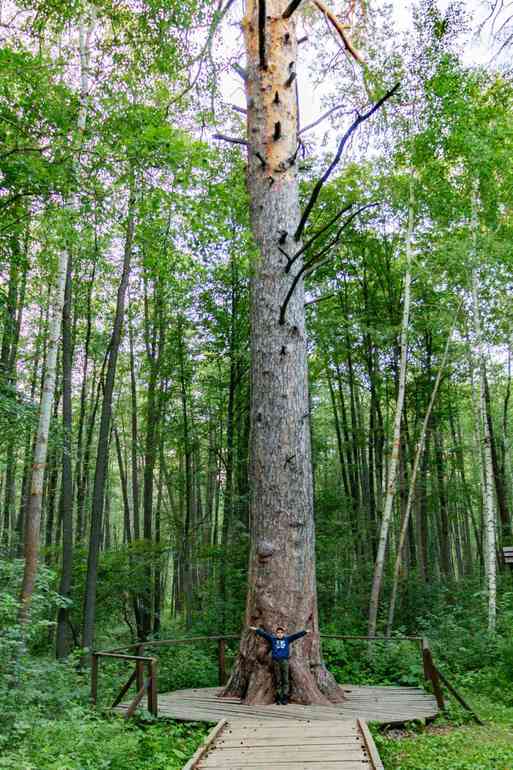 Раньше таких сосен-долгожителей было много. Но в советское время решили, что это старьё мешает росту молодняка, и вырубили все, оставив всего две (одна потом погибла, а другая стала достопримечательностью).