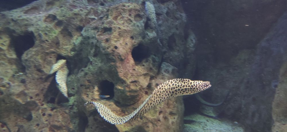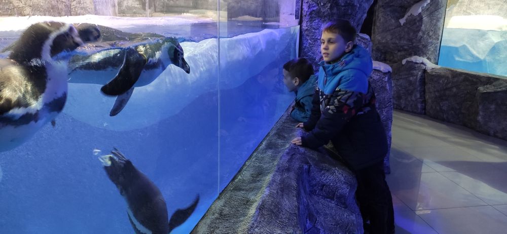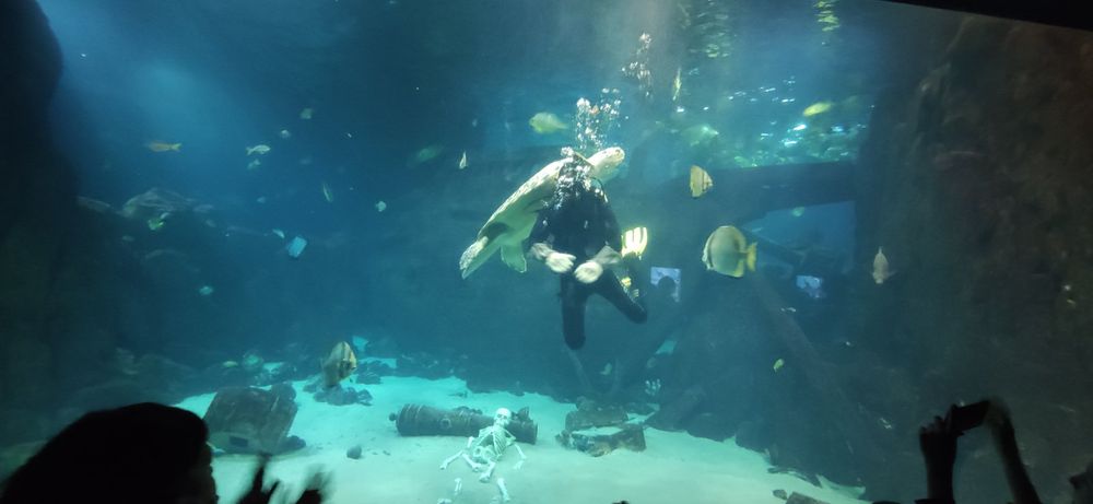 Океанариум в Адлере. Очень было интересно и детям, и нам, взрослым. Одно но - толпы народа (видимо, ненастье не только нас загнало с улицы в помещение). Какая дистанция! )) Людей в залах больше, чем рыбок в аквариумах. В остальном - всё прекрасно: рыбки жили своей жизнью, аквалангист вальсировал с гигантской черепахой, русалки поражали своей способностью долго обходиться без кислорода, скат улыбался всем по ту сторону стекла )
