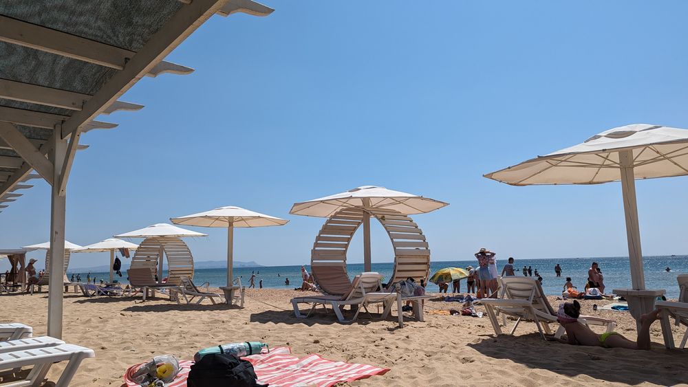 Трансфер на море есть, но это небольшой автобус. Да и пляжи, куда возят, там небольшие. А народу этим летом в августе была просто тьма, что вполне предсказуемо. Нам дали совет - если едете на трансфере, выходите на конечной остановке, а не на ближайшем пляже. Иначе обратно можно не уехать, в автобус просто не влезешь🤷🏼♀️ но мы не стали пользоваться этой услугой.