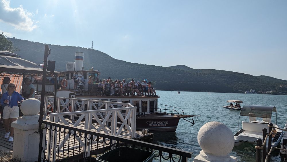 И ещё тут про Абрау-Дюрсо напишу сразу пару слов. Хотели там переночевать хотя бы ночь, но все было забронировано, поэтому не срослось. Съездили просто на прогулку и заодно встретиться с другом мужа. Да, у нас поездка на море стала поводом встретить всех, кого тысячу лет не видели, потому что живём в разных уголках страны🤣