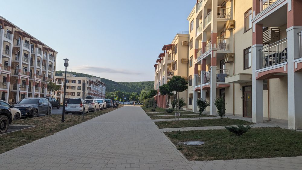 Вообще в Сукко вариантов жилья для съема на всяких сайтах почти не было. Привлек внимание один новый ЖК поодаль. Я понимала, что море там будет не в пешей доступности, и что местность там гористая, но был заявлен трансфер для жителей к морю. Решили попробовать.