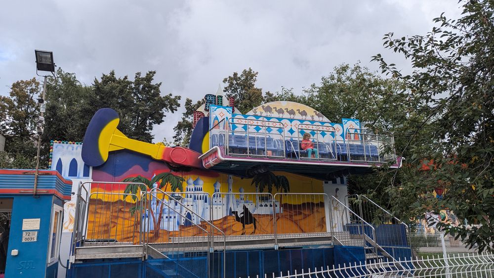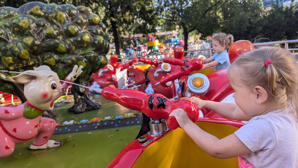 Ещё пытались несколько раз съездить в горсад, получилось с горем пополам))) то он не работал из-за дождей, то работал, но дождь начинался в процессе катания (один раз он-таки застал нас на медузах, докатались мы уже все мокрые🙈), то народу набежала тьма после работы, что очереди на аттракционы нарисовались. Цены как и везде, не особо низкие. Особенно когда катаешь кого-то в качестве сопровождающего, потому что тогда платишь вдвойне (за себя и за ребёнка). Для мелких в сопровождении и без нормальное количество аттракционов, для роста 130+ тоже пойдет. Для тех, у кого рост между 110 и 130, прям беда какая-то. На те аттракционы, где в Москве пускают с сопровождением, там не пускают даже с ним - на ракушки, например. Средняя у меня осталась в пролете)))