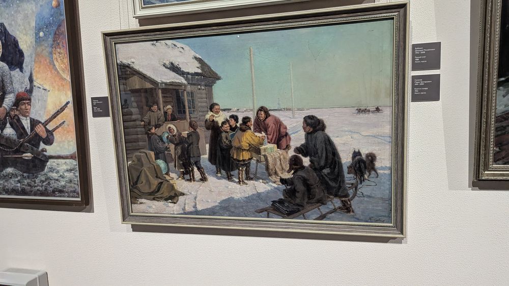 Картины с местным колоритом - привезли книги в тундру для ханты.