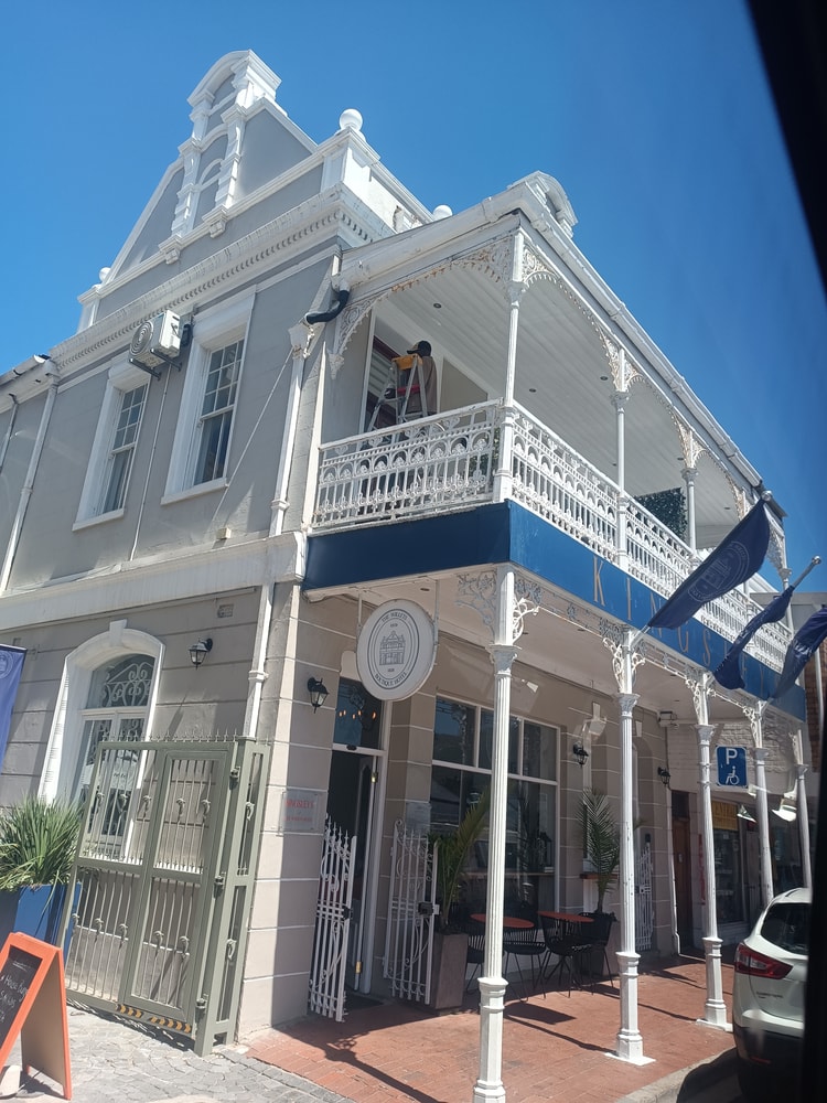 Типичные дома в ЮАР - с пристроенными резными металлическими балкончиками на тонких ножках - тянутся вдоль дороги, на первых этажах были в основном магазины, на вторых рестораны.