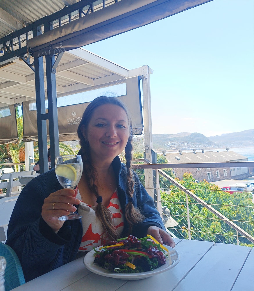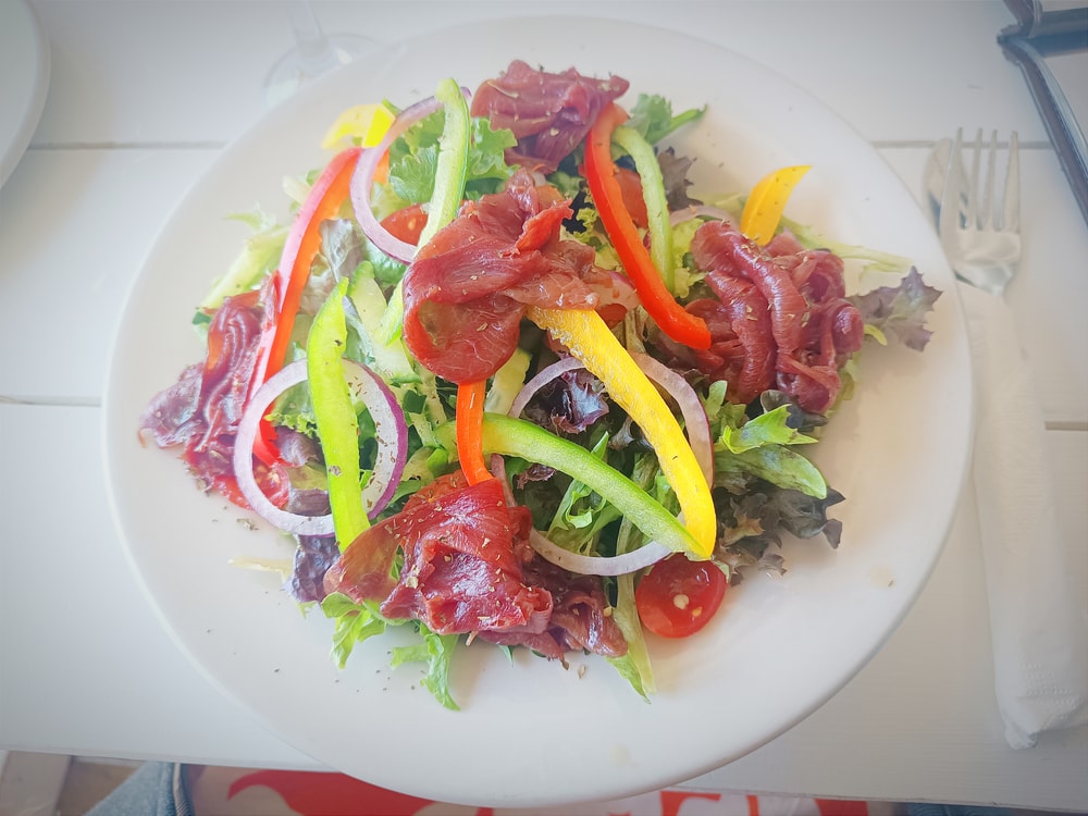 Так как я в ЮАР была в процессе похудения, заказывала себе почти всегда салаты в ресторанах. Этот был с рыбным карпаччо.