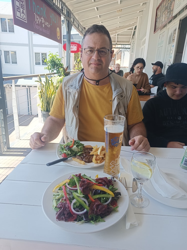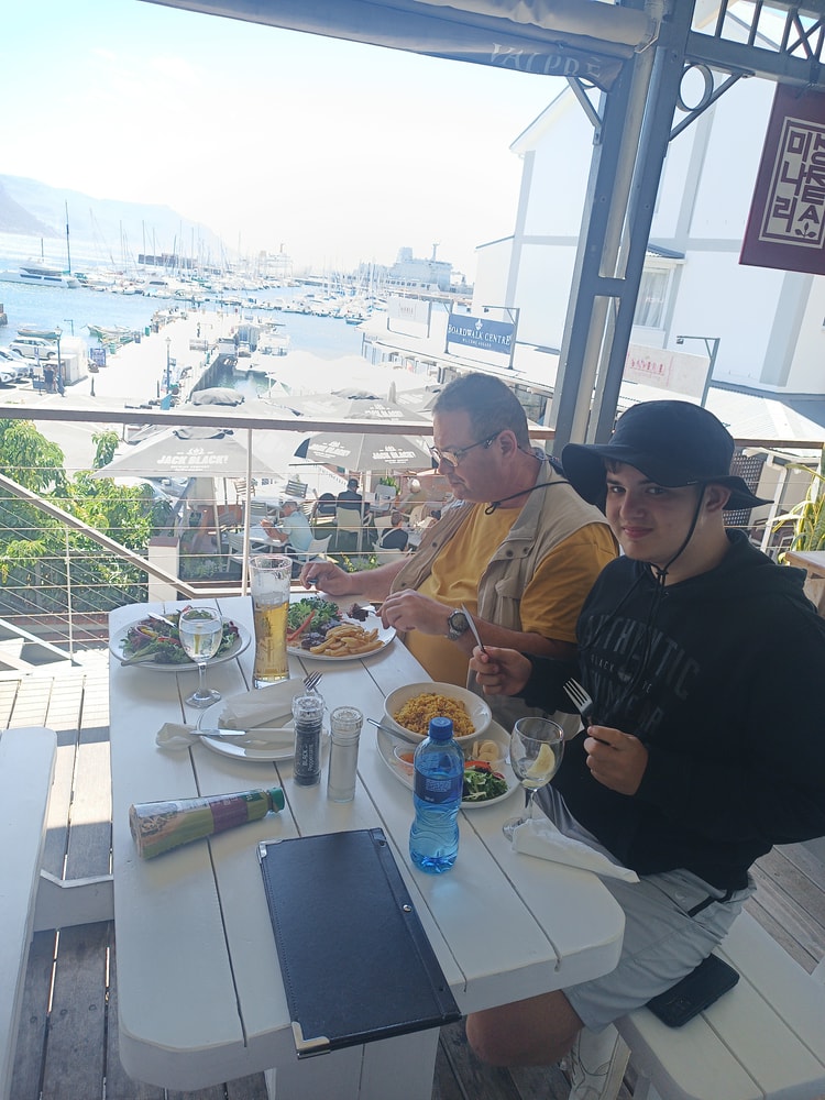 Следующая остановка была в маленьком придорожном городке для обеда. Это был ближайший к мысу Доброй Надежды населенный пункт - Саймонстаун, или на африкаанс Симонстад. Язык африканс - это диалект голландского, который привезли сюда первые колонисты, основавшие здесь Капскую колонию.