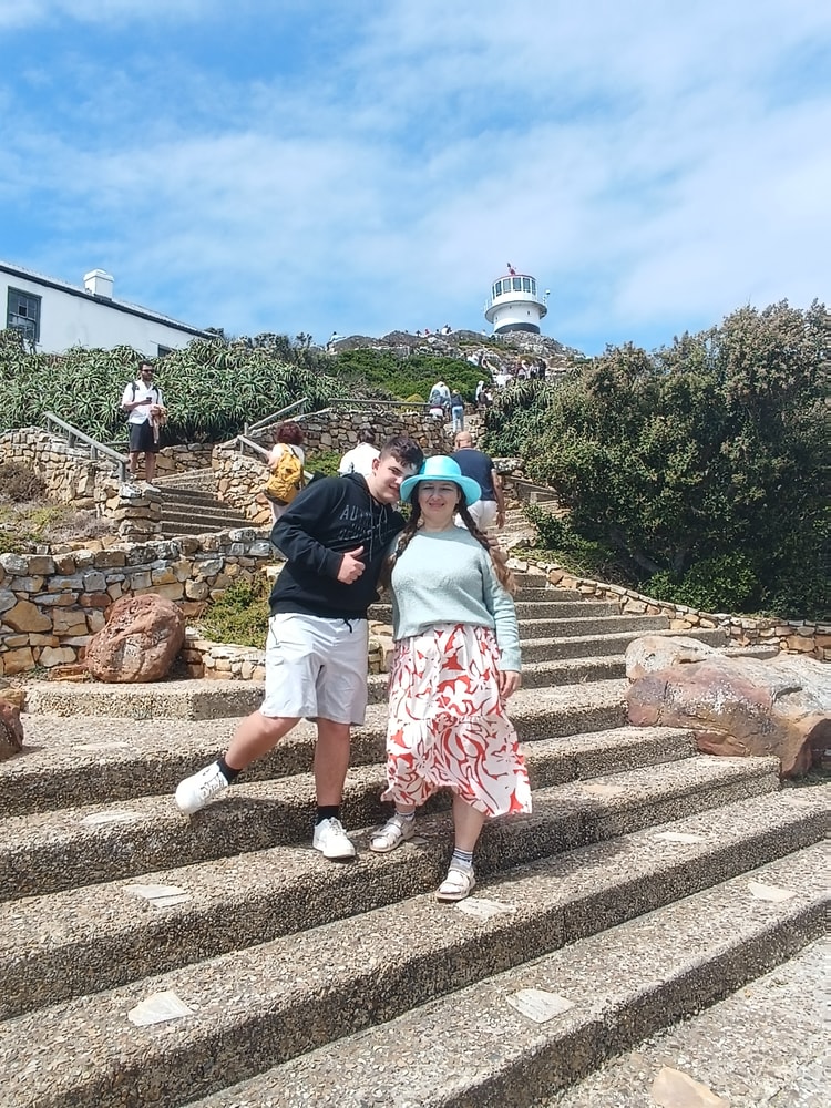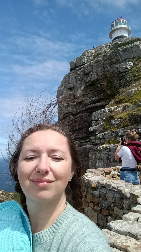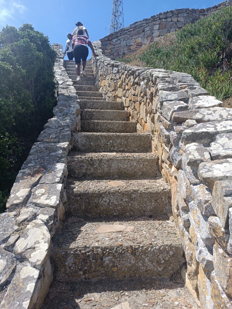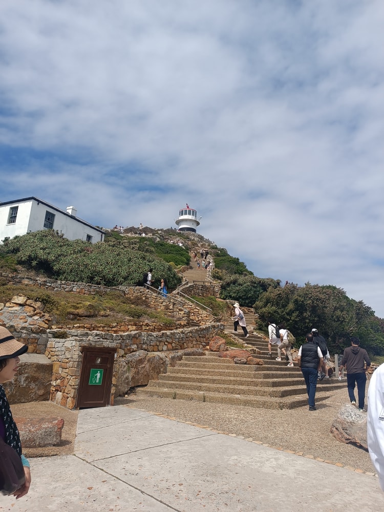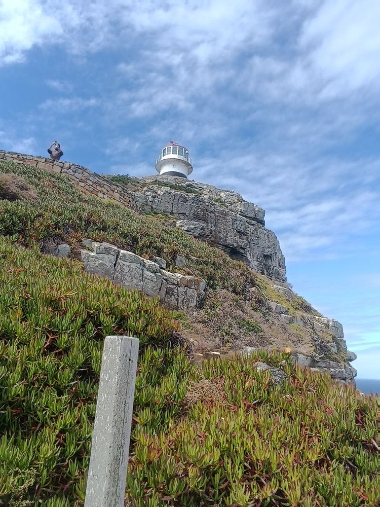На самом мысе Доброй Надежды на скале стоит маяк, а внизу памятная доска. Нам дали свободное время 20 минут, и мы конечно решили залезть к маяку.