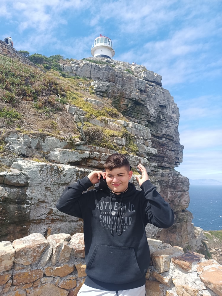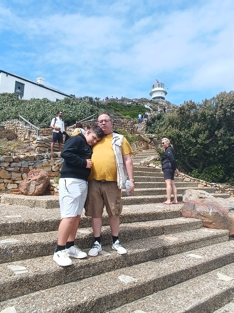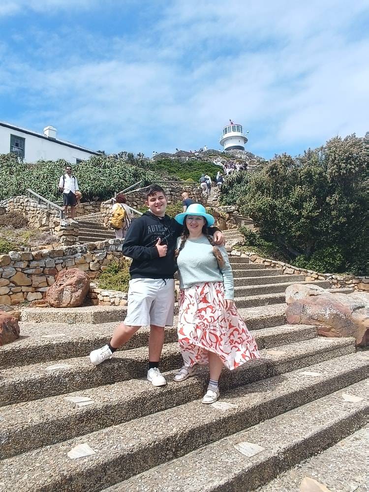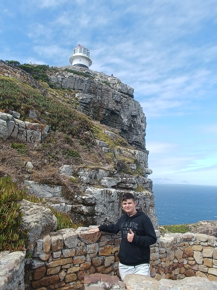 На самом мысе Доброй Надежды на скале стоит маяк, а внизу памятная доска. Нам дали свободное время 20 минут, и мы конечно решили залезть к маяку.