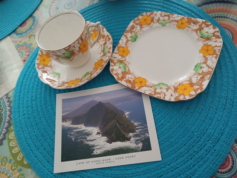 В лавочке было много антикварной красивой мебели, но я охотилась за посудой: давно коллекционирую чайные тройки: чашка, блюдце и десертная тарелка. В лавочке нашла такой набор, купила и довольная побежала на наш автобус.