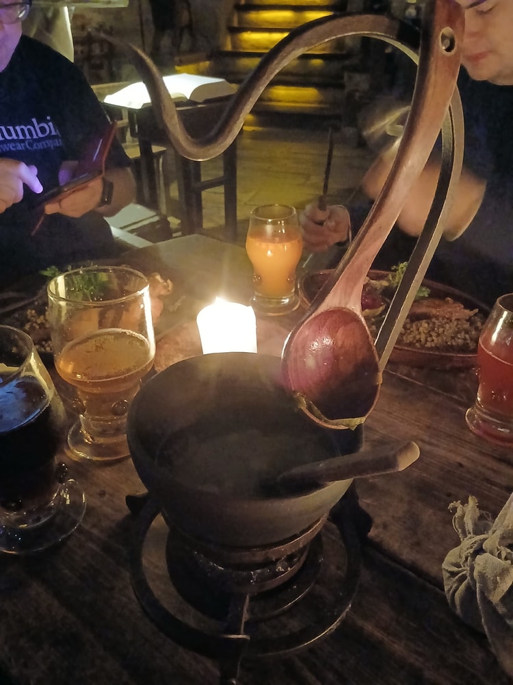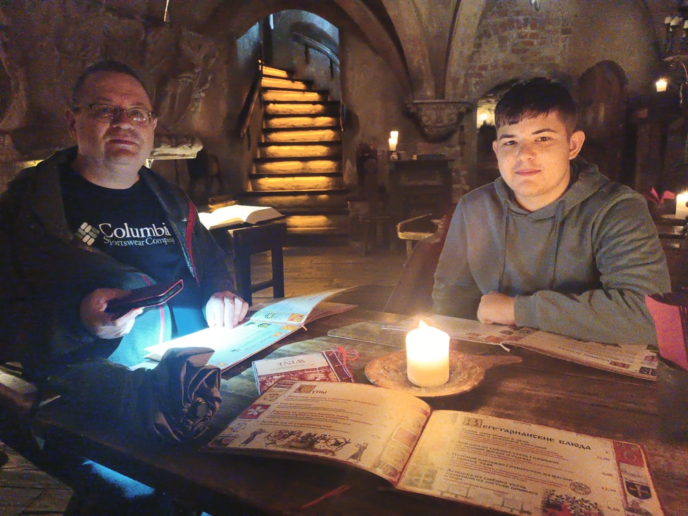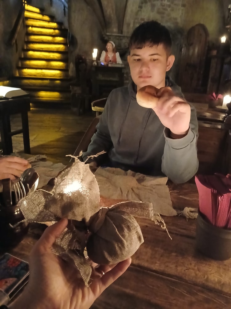Еда тоже аутентичная, никаких картофеля, кофе или помидоров, их в Средневековье еще не знали. Пили мы морс, квас и местное пиво.