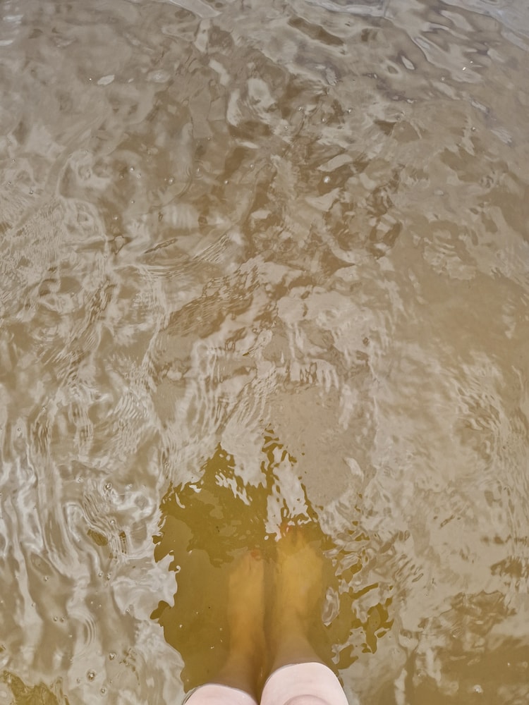 Прозрачная/голубая вода бывает только в карьерах )) а речная/озёрная она вот такая. Может и чистая, но окрашенная торфом или глиной