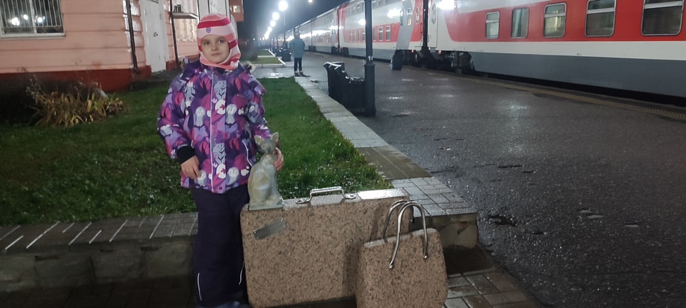 Попрощались на вокзале с ещё одной кошечкой и поехали домой)