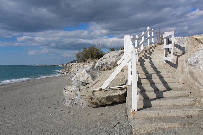 Пляж, как и на всем здешнем побережье - песок и мелкие камни, при заходе в море камни увеличиваются в размере, но не доставляют особого неудобства.
