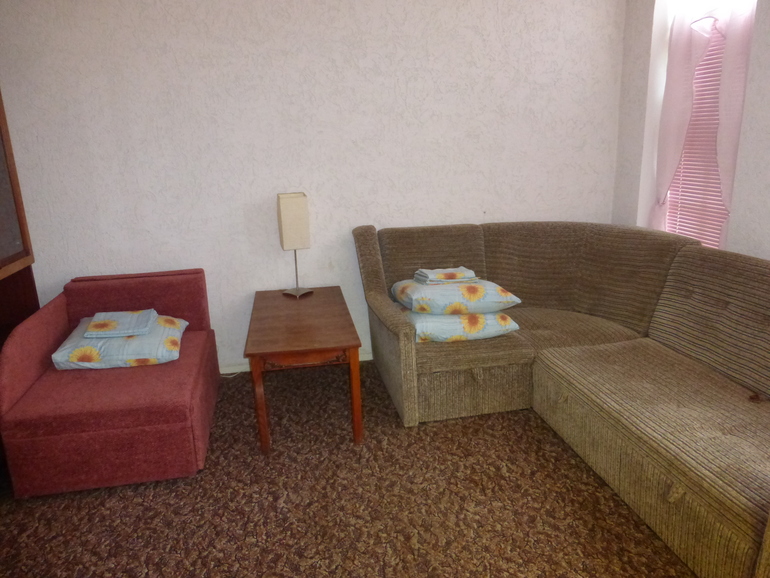 Эта комната находится ПОД трехместной, если семья большая, удобно занимать сразу две комнаты рядышком и можно пользоваться санузлом на втором этаже.