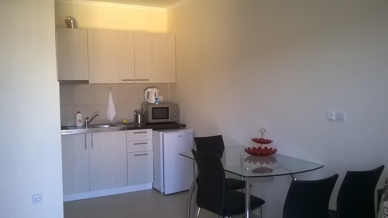 Квартира полностью приготовлена для проживания семьи из 4-х человек. В кухне плита, холодильник, посуда. Есть стиральная машина и гладильная доска с утюгом. Постельное белье, полотенца ( в том числе и пляжные).