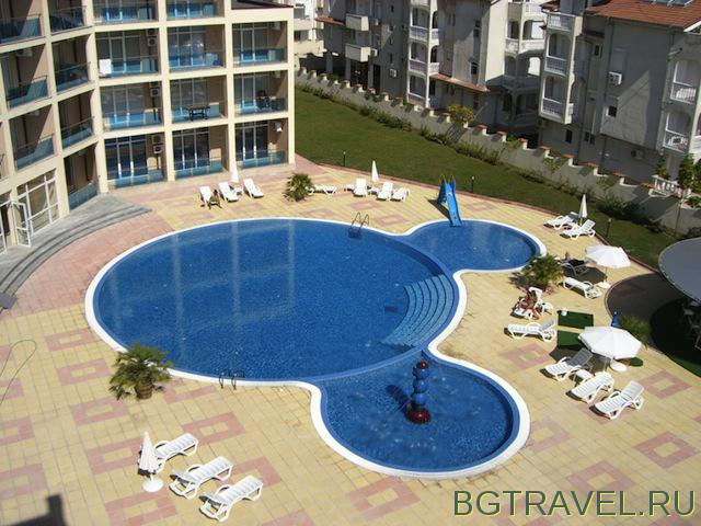 БОЛГАРИЯ СДАМСдаю в аренду апартамент с одной спальней (двухкомнатная квартира) на курорте Солнечный Берег в 200 м. от моря. В комплексе есть два бассейна, один с детской зоной и детской водной горкой, бар, охрана, паркинг. Рядом с комплексом расположены супермаркеты, кафе, рестораны, остановка общественного транспорта, развлечения для взрослых и детей. В апартаменте : в зале - обеденный стол, 4 стула, кресло, телевизор, тумбочка для телевизора, кондиционер , кухня - эл.плита, микроволновая печь, вытяжка, посуда для приготовления и приема пищи, стиральная машина, холодильник, на балконе два стула и стол. в спальне - двухспальная кровать, дополнительная кровать (тип раскладушка), шкаф для одежды, шкаф для белья, утюг, сушка для белья, прикроватные тумбочки, кондиционер. Санузел совмещенный с душeвой кабиной.