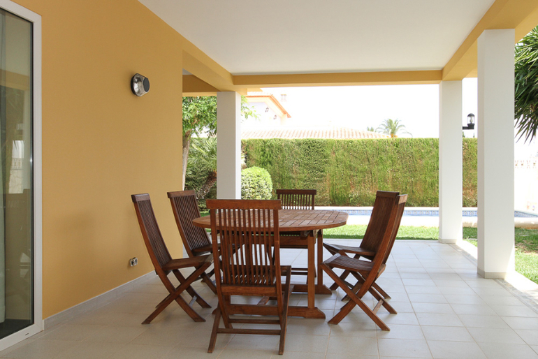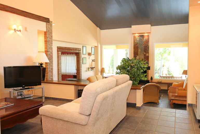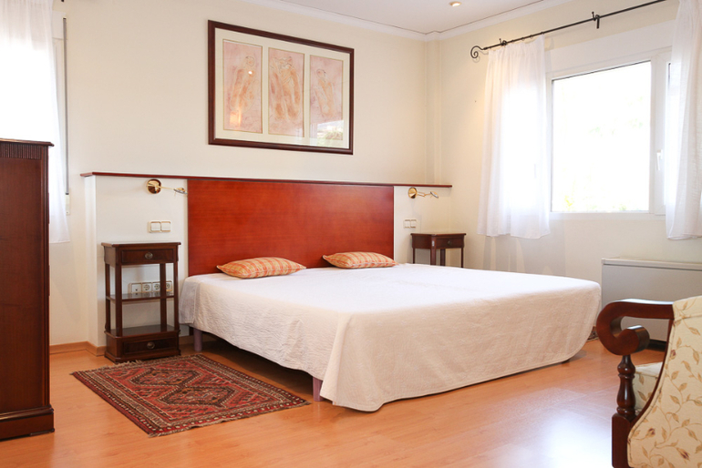 ИСПАНИЯ СДАМУютная и комфортабельная вилла Aquilles расположена в тихом резидентском районе Дении Santa Paula в 2-х км от центра города и от пляжа. Площадь постройки 400м2, земельный участок 800м2, бассейн, зеленая территория с деревьями, большая терраса с барбекью, крытое парковочное место, панорамный вид на гору Монтго. Вилла двухэтажная, на первом уровне расположена просторная гостиная с выходом в сад, кухня, столовая, библиотека, спальня, два санузла, прачечная комната; на втором - три спальни, три ванны, две террасы. Выдержана в класическом испанском стиле, с просторными помещениями, панорамными окнами, светлая и солнечная. Оснащена всем необходимым для полноценного отдыха. Хорошо оборудованная кухня с нарядной столовой и выходом на террасу с барбекью позволит насладиться свежыми и качественными продуктами средиземноморья.