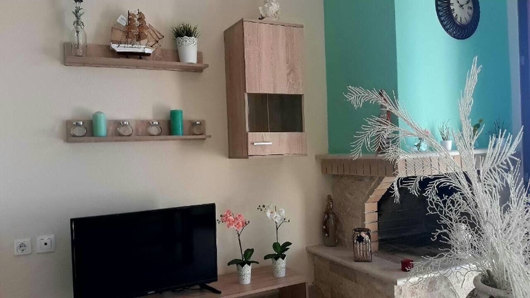 Квартира находится в тихом красивом городке Неа Скиони, в 400 метрах от центра c красивой набережной, бич баров, маркетов, аптек , курорт славится рыбными отделами с самым большим ассортиментом на Кассандре.