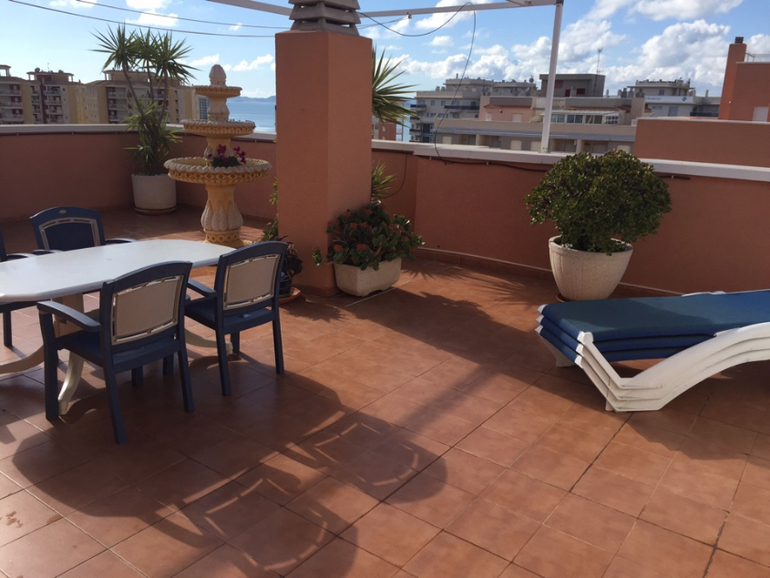 Сдаю свою квартиру на 9 этаже, пентхаус, террасса 100 кв.м., 3 спальни, 2 санузла, столовая. Площадь квартиры 95 кв.м. На террасе есть стол, стулья, навес от солнца, лежаки для загара, фонтан с водой. В квартире есть все необходимое для комфортного проживания, полностью оборудована кухонными и постельными принадлежностями. На террасе имеется гриль.Организация трансфера из аэропорта.