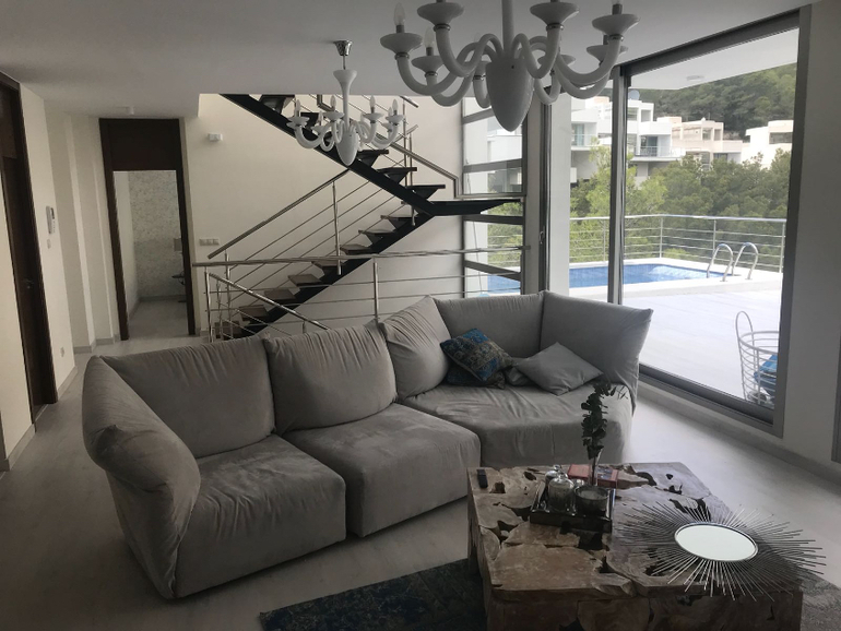 3 спальни , 3 ванны, зал, кухня, лифт, бассейн, парковочное место.