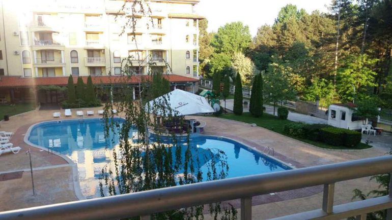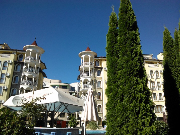 Апартаменты с 2 спальнями с видом на бассейны !! На 3-м этаже: прихожая, гостиная, 2 спальни, 2 террасы, 2 ванные комнаты. Кондиционеры в каждой комнате. Прихожая. Ванная комната с душем. Гостиная: раздвижной диван, кресло, стол, стулья, телевизор. Кухня: стиральная машина, холодильник, эл.плита с духовкой, микроволновая печь, эл.чайник, посуда. Большая терраса с Видом на бассейны и зеленые лужайки комплекса !! 1-я спальня: 2 односпальные кровати, гардероб, тумбочки. 2-я спальня: двуспальная кровать, гардероб, тумбочки. Ванная комната с душем. Из спален выход на террасу - вид на бассейны. Постельное белье, полотенца. Все комнаты раздельные - подходит для 2-х семей. В комплексе: - детская площадка, - бассейн детский, - бассейн взрослый, - бар у бассейна.