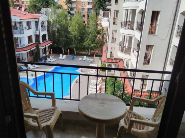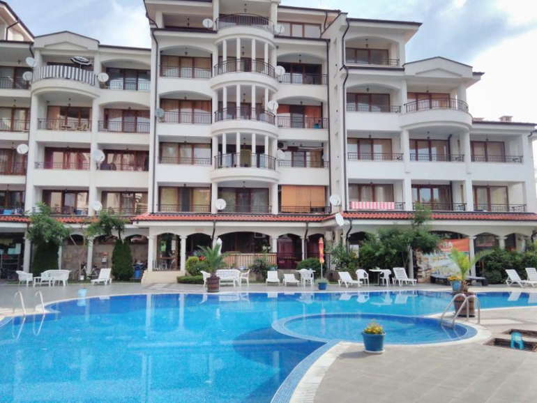 В комплексе: большой бассейн с детской секцией, фитнес центр, один из лучших на Солнечном берегу, охрана. Бесплатная парковка. Напротив - благоустроенная детская площадка. Рядом есть 2 супермаркета и хозяйственный магазин. Многочисленные кафе, бары, рестораны, а также танцевальный клуб "MANIA".