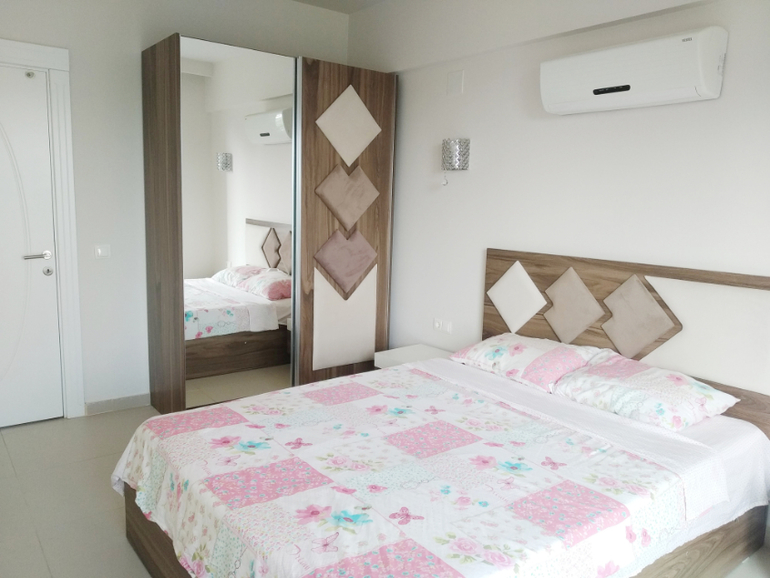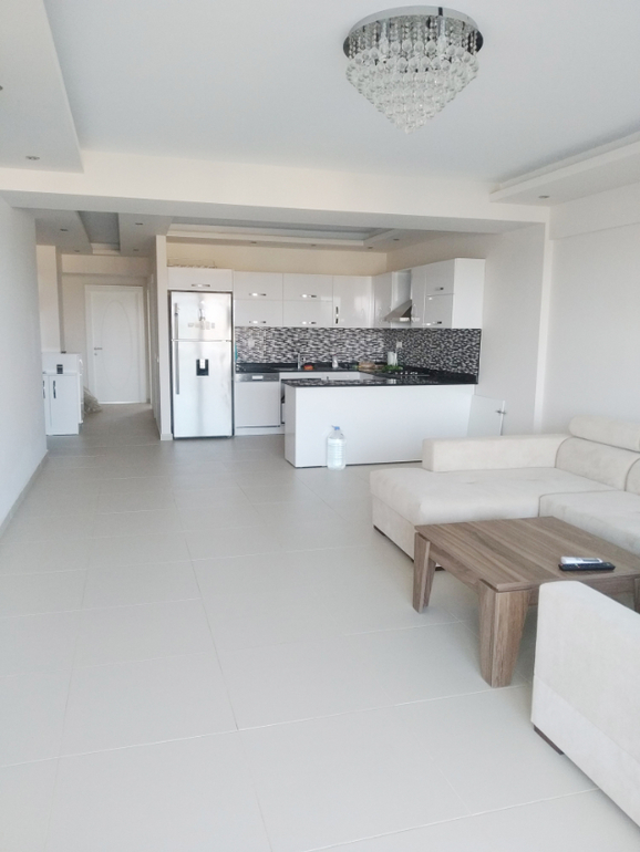 Прекрасная светлая большая квартира 2+1 с мебелью 120 м2 , на берегу средиземного моря в замечательном городке Каргипинаре возле Мерсина.