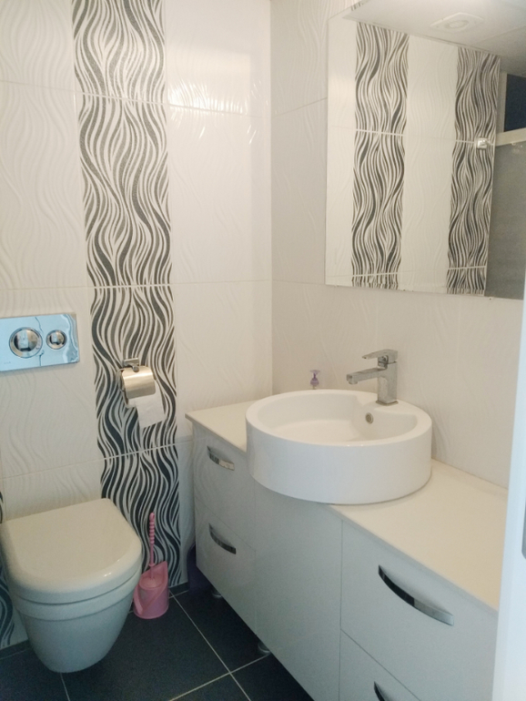 В квартире имеется все для комфортного проживания. Большая кухня с встроенной необходимой техникой, 2 Спальни, гостиная совмещенная с кухней, 1 терраса (10 м2)с видом на море, 1 балкон с видом на цитрусовые сады, 2 санузла, 3 кондиционера, стиральная машина, посудомоечная машина.