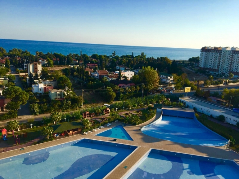 паркинг, охрана территории, теннисный корт, баскетбольная площадка, тренажерный зал, открытая тренажерная площадка, детская площадка, детский бассейн, бассейн с приливной волной, 3 бассейна с пресной водой, кафе, бар, зона барбекю, магазины, собственный песчаный пляж, оборудованный зонтиками, шезлонгами, душем.