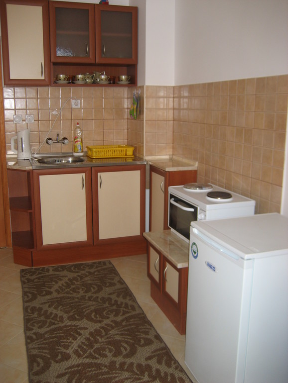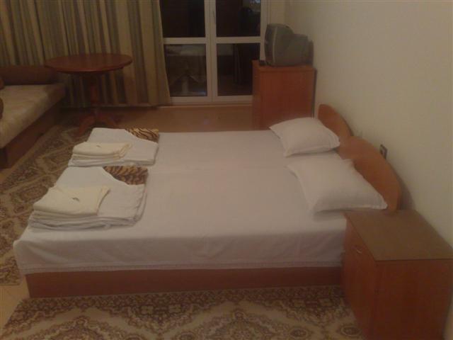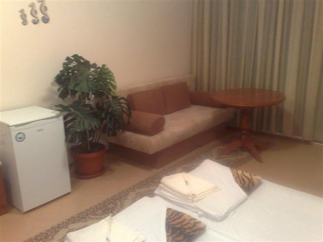 - В гостиная (с кухонный бокс) есть двуспальная кровать, кресло-кровать (1 человек), диван, шкаф для белья и одежды, тумбочки, телевизор с кабельными канали, роутер, кондиционер, обеденный стол, стулья, холодильник, элекрическая плита с духовкой, вся необходимая посуда, электрочайник, утюг с гладильная доска, сушилка для белья, балкон.