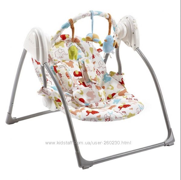Я вот купила шезлонг. Для той цели чтобы у нас была как бы переносная кроватка. Старшей самой интересно сестренку качать. С качелями боюсь ребенка приучить к качаниям. Со старшей этого избежала.