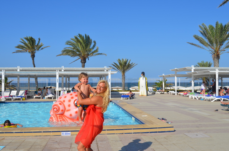 В Тунисе очень любят детей, а уж от голубоглазых блондинов просто пищат! Весь персонал тискал Антошку, таскал на ручках, щипал за щёчки...и даже пытались целовать
