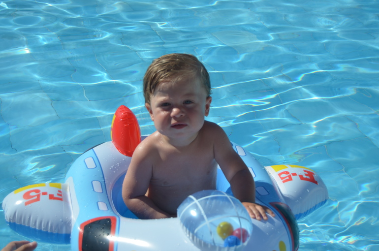 Это мы в бассейне с новым плавсредством: