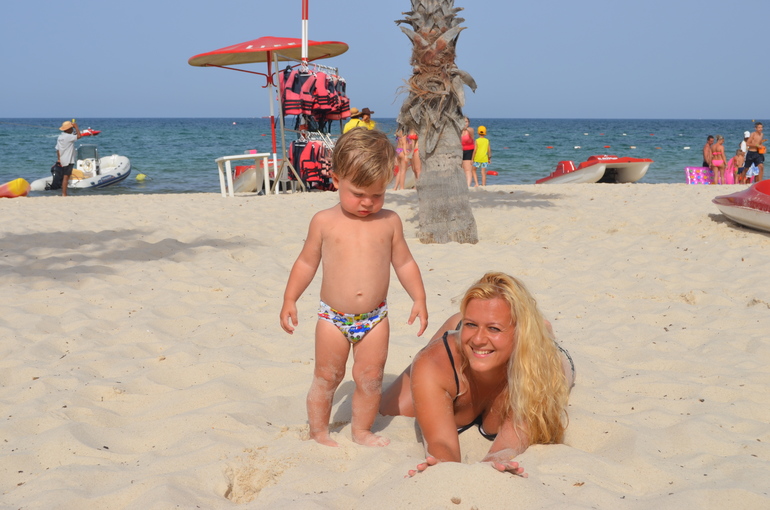 4) МОРЕ. МОРЕ и ПЛЯЖИ в Тунисе - это отдельная песня!!!!!! Самые лучшие в Махдии и в Порт Эль Кантауи. Белоснежный песок как на Мальдивах, плавный заход в море - то что нужно для детишек! Антошка в этой поездке полюбил воду! Только заходим мы медленно и аккуратно, на ручках у мамы. А потом привыкаем и начинаем отрываться по полной!![]()