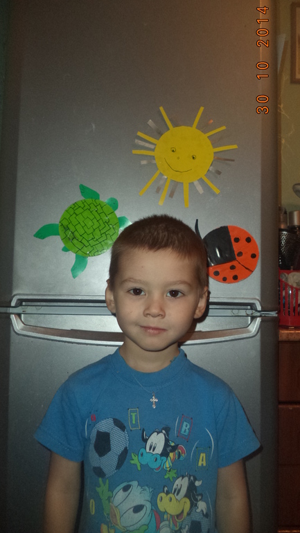 Мы сделали солнышко, черепашку и божью коровку!!! И украсили ими холодильник))))))
