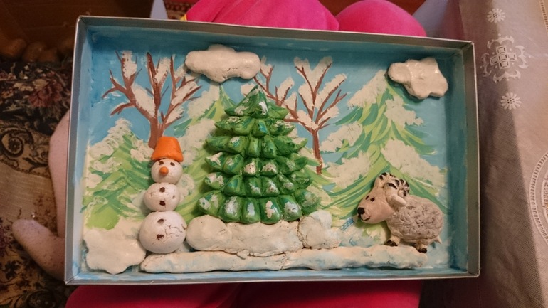 Галерея рукоделияЗдравствуйте дорогие ббшечки! вот тож захотела поделиться с вами нашей работой с сыночком. Вот такую композицию на тему зимы мы сотворили,правда в основном творила мама, но Вовуся тоже помогал с тестом,катал колобки снежок и снеговичка,барашка тоже правил как мог
